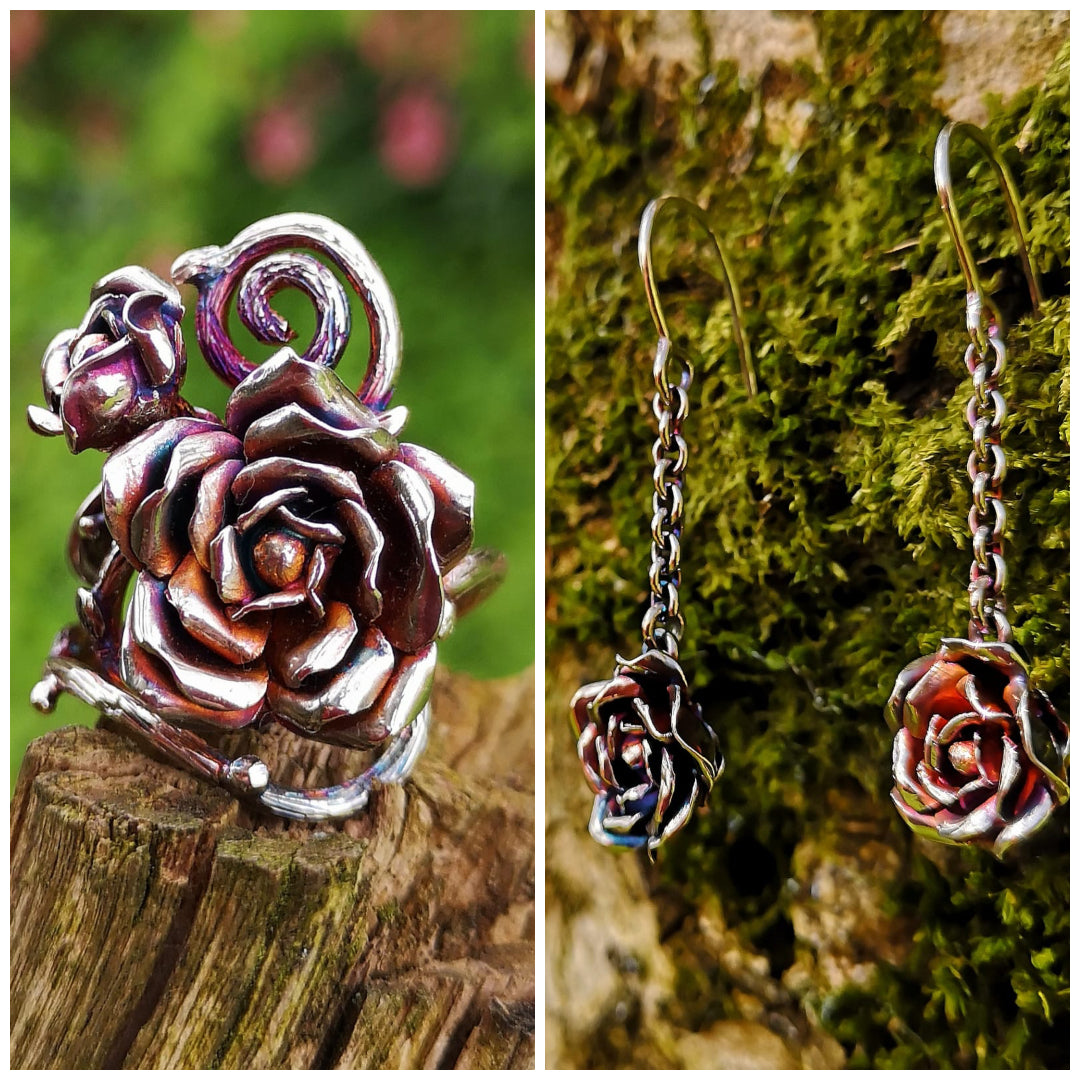 Inspired by a design he had stumbled across online, he came to me with an idea. He wanted to create a special rose flower ring with earrings to match to give to his wife to celebrate their 25th wedding anniversary.