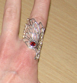 Ok ladies, let's admit it, we all LOVE rings!! And here is some ring!!Gorgeous gossamer web-like detail, in a handmade sterling silver ring with a sparkling 6mm gemstone. Asymmetrical to fit...